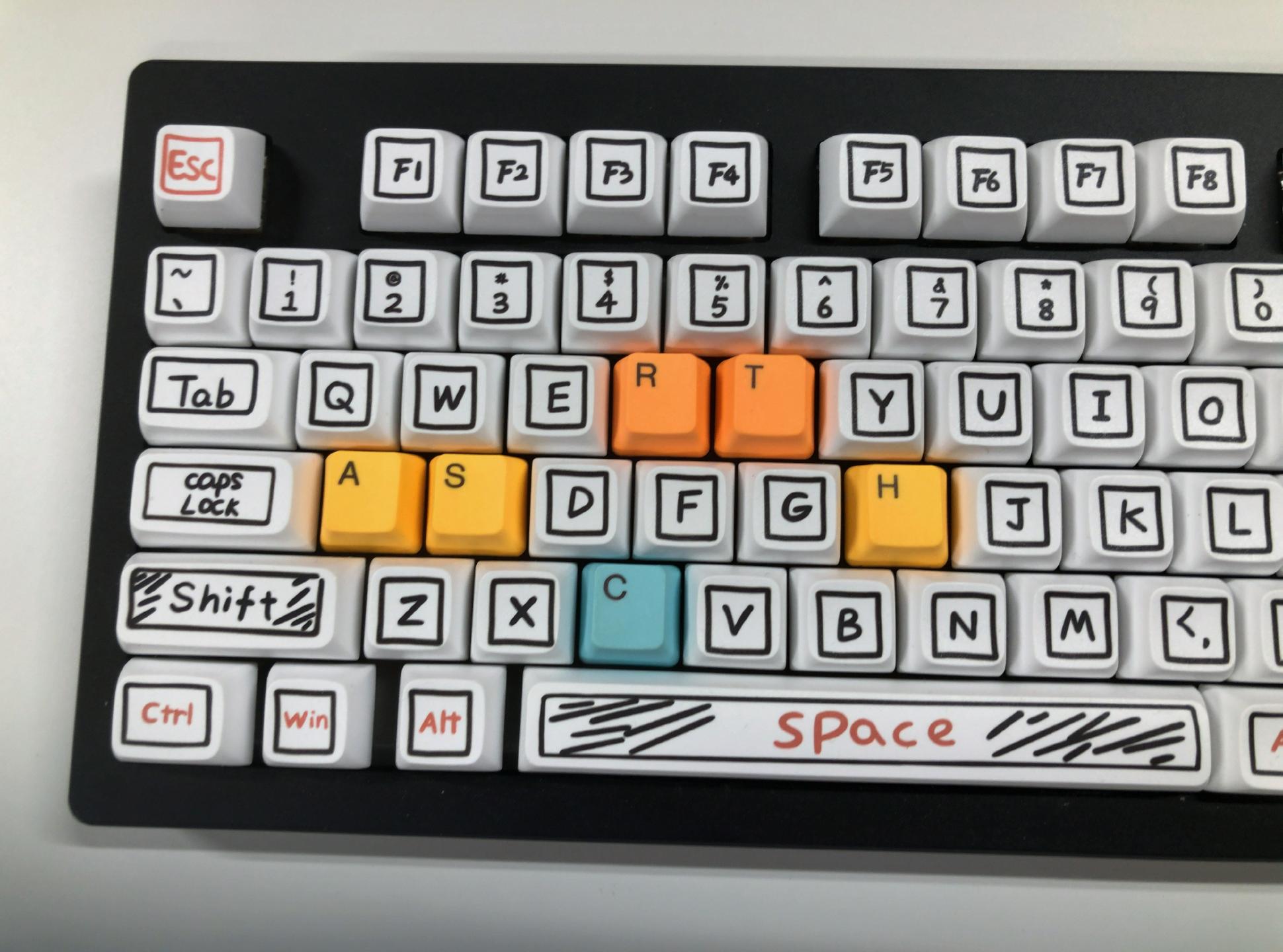 自作キーボードで、SCRATCHの文字だけ違うキーキャップにて展示をする。